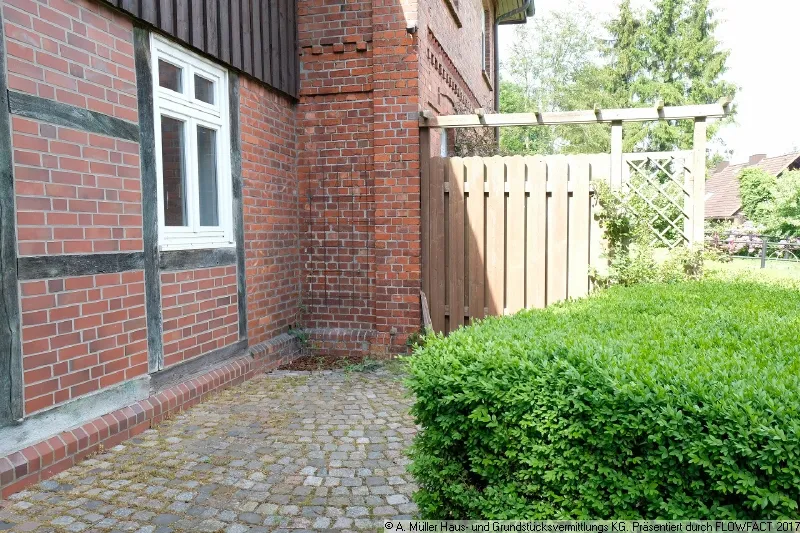 Weiterhin gehört zu der Wohnung der Gartenbereich vor dem Haus. Dieser Bereich, sowie der Bereich der Terrasse und die Einfahrt sind vom Mieter zu pflegen.