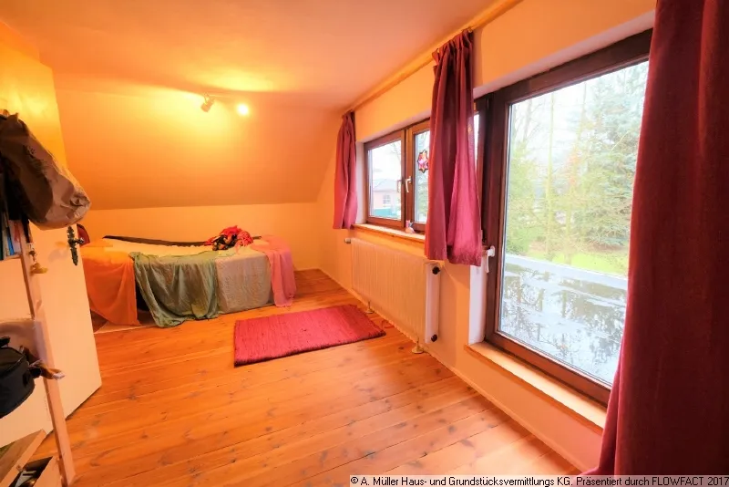 Das Dachgeschoss mit zwei Schlafzimmern und einem Duschbad wurde von den jetztigen Eigentümern neu aufgeteilt, ausgebaut und gedämmt. Es erhielt vier neue Dachflächenfenster, gen Westen verfügen die Fenster über elektrische Rolläden.