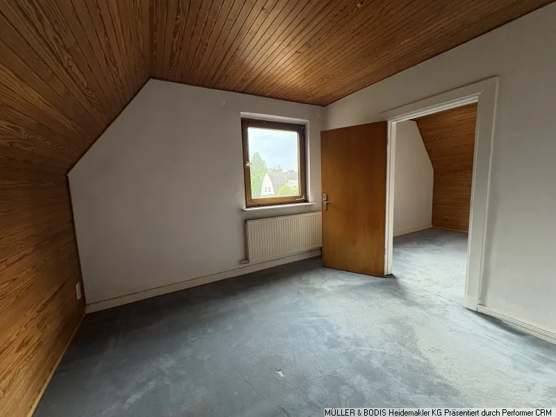 Ins Obergeschoss führt eine hübsche Holztreppe, die mit Teppichfussboden belegt ist. Hier oben finden Sie drei Zimmer und ein Badezimmer vor. Vom Badezimmer gelangt man über eine alte Holztreppe in den Spitzboden des Hauses, der als Abstellfläche genutzt werden kann.