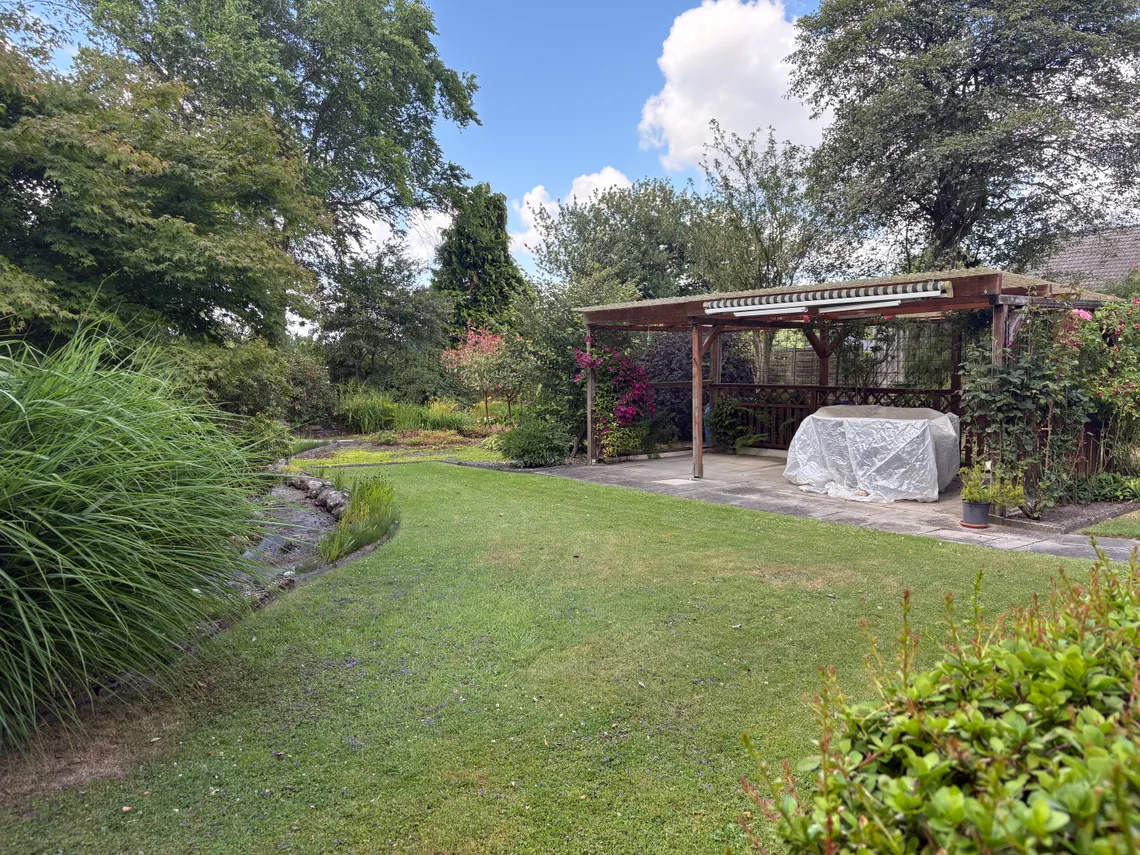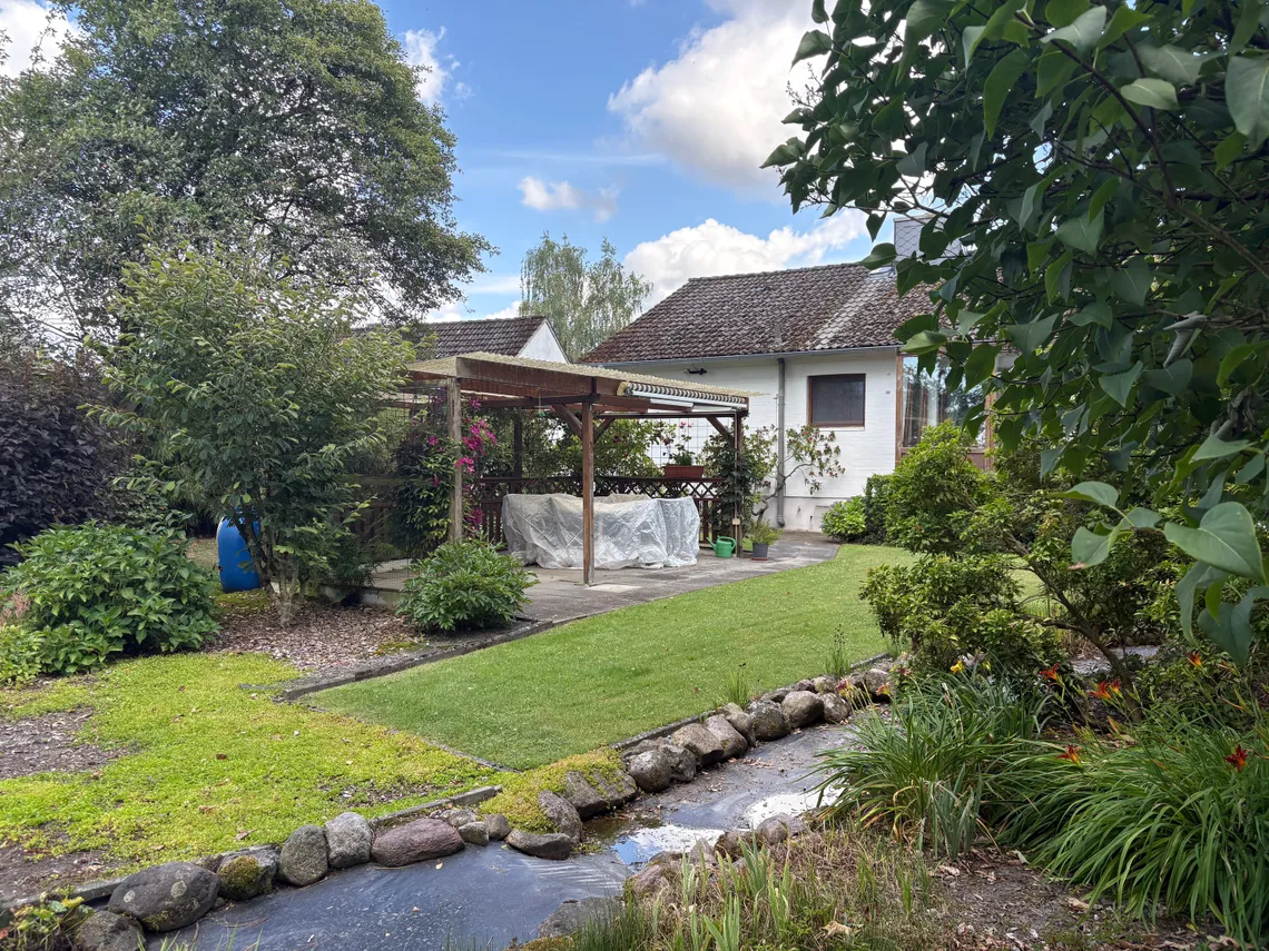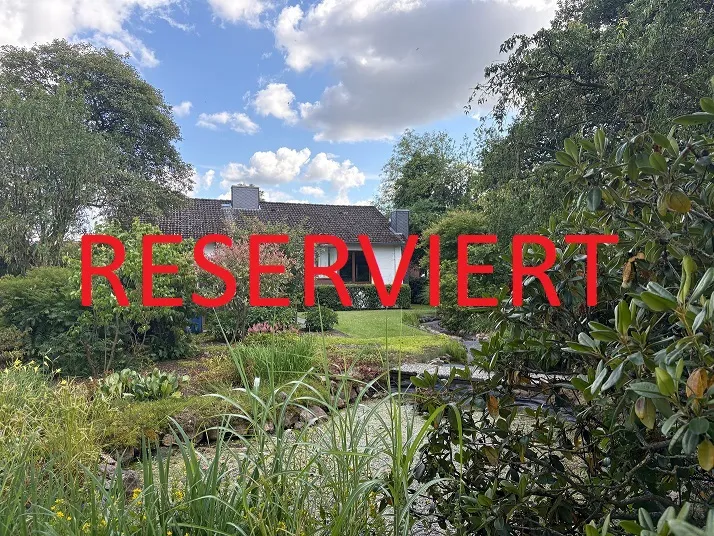 In einer schönen und ruhigen Wohnlage befindet sich dieses gepflegte Einfamilienhaus auf einem großzügigen 1.102 m² großen Grundstück, das im hinteren Bereich an eine idyllische Grünlandfläche angrenzt. Der uneinsehbar angelegte Garten mit Teich und Bachlauf lädt zum Entspannen ein und bietet viel Privatsphäre sowie Raum zur individuellen Gestaltung.