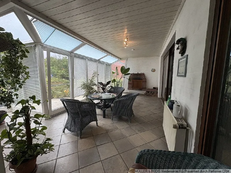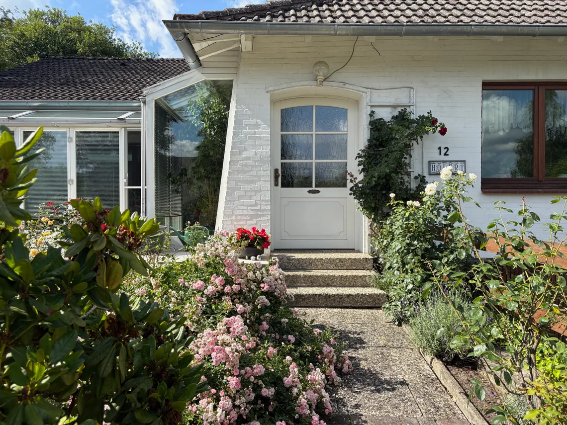 Das Wohnhaus ist ein Bungalow mit Vollkeller aus dem Baujahr 1967 und verfügt über ca. 103 m² Wohnfläche im Erdgeschoss. Hinzu kommt ein ca. 30 m² großer, beheizbarer Wintergarten aus dem Jahr 1996, der das Wohnerlebnis erweitert. Der Wintergarten wurde auf der gen Süden ausgerichteten vorderen Terrasse erstellt, durchgehend hell mit Fliesen ausgestattet und dient u. a. als Hauseingang mit Haustür.