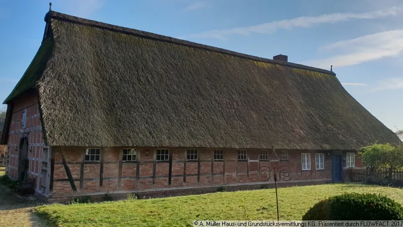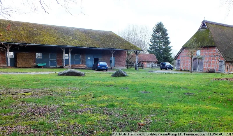 Auf einem ca. knapp 7 ha großen Grundstück befindet sich dieser denkmalgeschützte, unter Aufsicht den Amtes für Denkmalschutzpflege sanierte Hof. Er besteht aus dem historischen Reetdachfachwerkhaus und der großen Scheune, die als Pferdestall ausgebaut wurde.