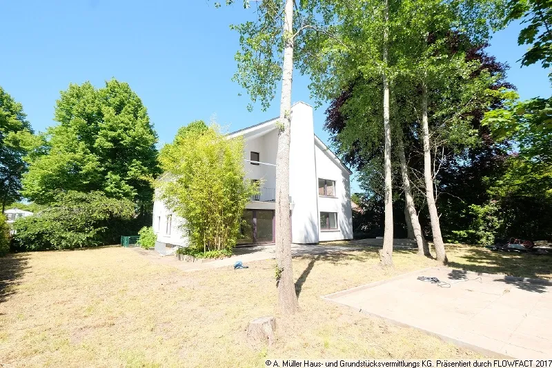 Der Garten befindet sich in einem kleinen "Dornröschenschlaf" und ist etwas verwildert. Es handelt sich um ein sehr schönes großes, gen Süden ausgerichtetes Grundstück, teils mit altem Baumbestand in einer sehr gepflegten Nachbarschaftsbebauung.
