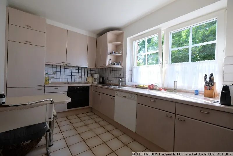 Die geräumige Küche verfügt über einen direkten Zugang in den Wohn-Essbereich. Sie ist mit einer hellen Marken-Einbauküche (Bulthaupt aus Baujahr) mit allen elektrischen Geräten ausgestattet und ist in einem sehr gepflegten Zustand.