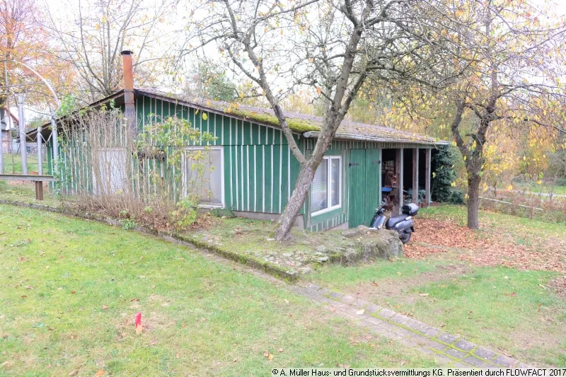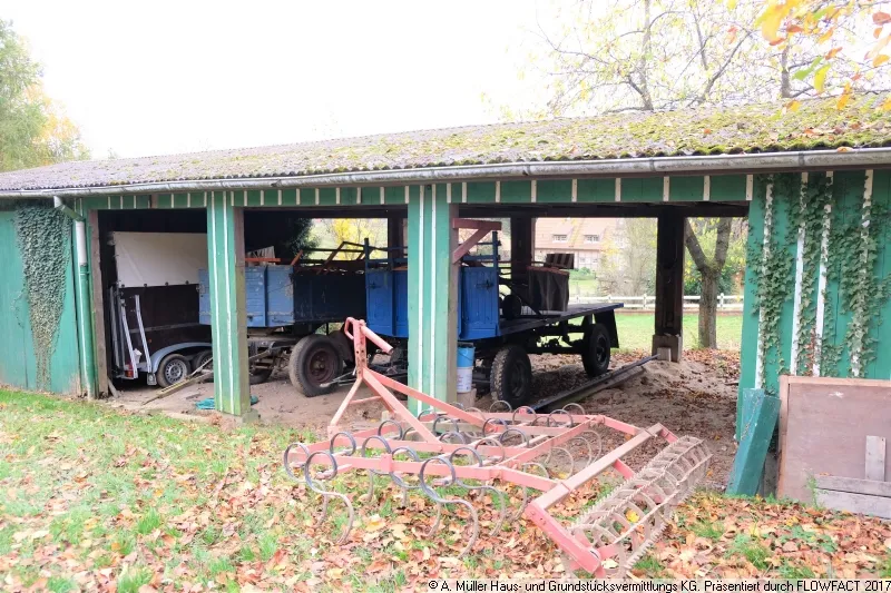 Das Grundstück wurde von einem bebauten Flurstück abgetrennt und ist derzeit mit einer alten hölzernen Remise bebaut.