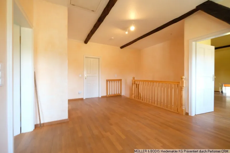 Das Haus verfügt über eine große Individualität. Die Sichtbalken, die charmante, unkonventionelle Raumaufteilung, die offene Wohnküche, die Dielenfußböden und vieles mehr schaffen hier ein ganz besonderes Wohnklima.