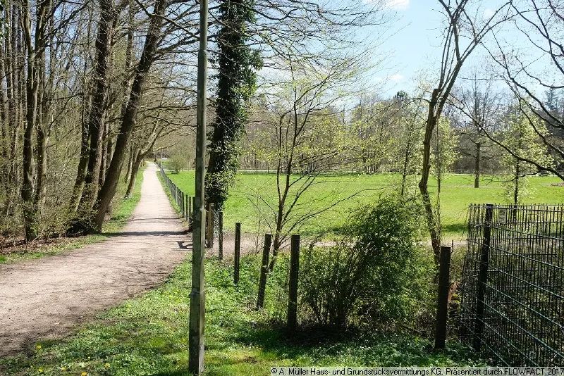 Die fünf angrenzenden Garagen auf der Ostseite des Grundstückes sind an die Mieter vermietet. Die angrenzenden Parkflächen sind öffentlich.