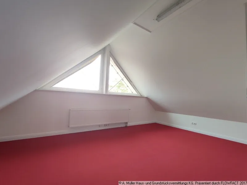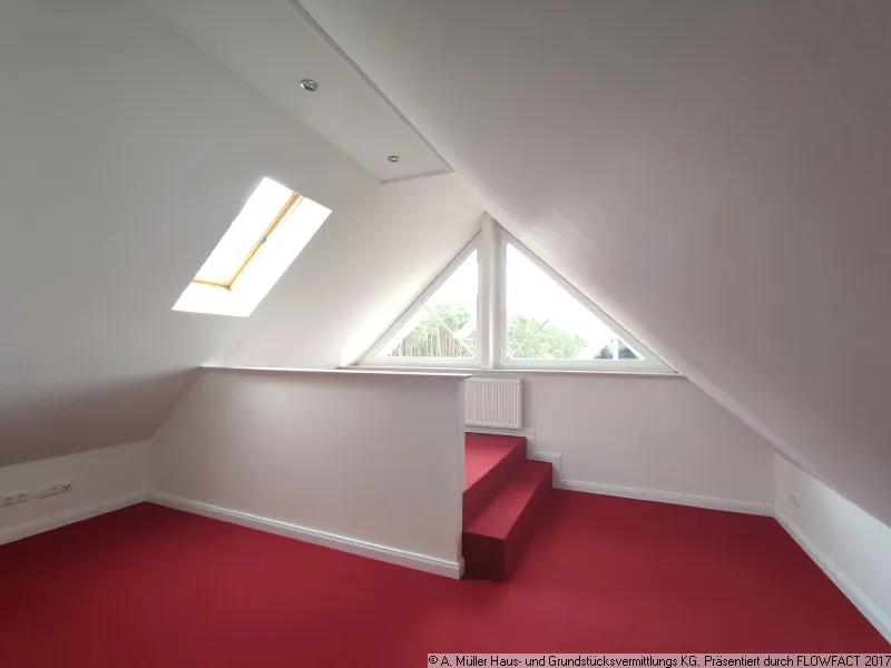 Vom Flur aus gelangen Sie über eine Holztreppe in den "wohnlich" ausgebauten Spitzboden. Dieser bietet sehr viel zusätzliche Fläche, wurde aber in der Wohnfläche nicht berücksichtigt.