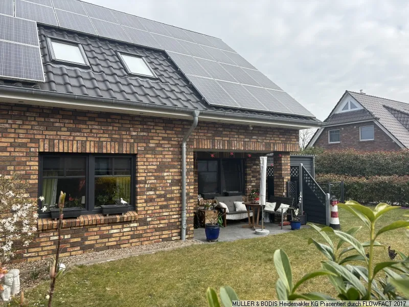 Auf der Südseite des Daches der Doppelhaushälfte befindet sich eine PV-Anlage, die über die gesamte Dachfläche des Doppelhauses geht. Die Verkäuferin hat hier einen 20 Jahres-Einspeisungsvertrag abgeschlossen, der Erlös aus der Einspeisung erhält die Nachbardoppelhaushälfte (Haus Nr. 25 B), die der Tochter der Verkäuferin gehört.