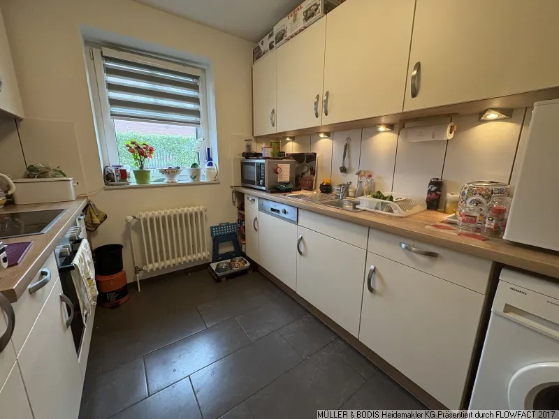 Zum Objekt: nach Betreten der Haustür teilen sich die Wohnungen mit den jeweiligen Wohnungseingangstüren. Beide Wohnungen sind mit schicken weißen Einbauküchen ausgestattet. Sie enthalten einen Geschirrspüler, einen Herd mit Ceranfeld, einen Backofen, einen Kühlschrank und eine Spüle.