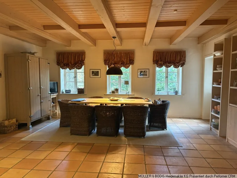 Das große Reetdachfachwerkhaus wurde 2002 komplett neu errichtet und spiegelt einen neuzeitlichen, lichtdurchfluteten exklusiven Landhausstil wieder. Die angrenzenden Gebäude wurden teils neu errichtet, teils perfekt saniert.