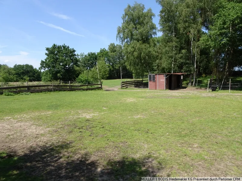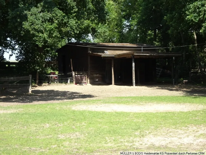 Flurstück 72 – 8.582 m²: Offenstallgebäude mit angrenzendem Paddock.