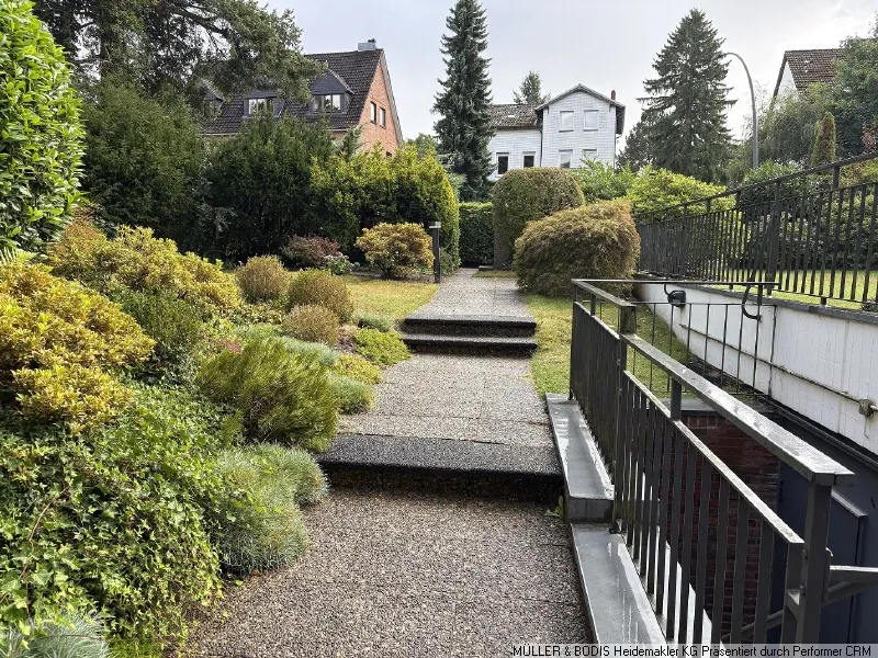 Das Gebäude wurde ideal von der Straße zurückgesetzt gebaut und verfügt über ein sehr gepflegtes, schön angelegtes Grundstück.