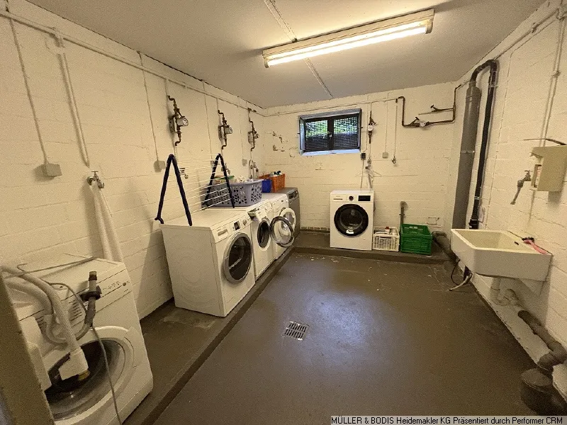 Zu der Ihnen mit dieser Offerte angebotenen 3-Zimmer-Eigentumswohnung gehören ein Tiefgaragenplatz und ein Kellerraum (Nr. 5 im Plan). Im Keller sind weiterhin gemeinschaftliche Räume, wie ein Waschkeller und ein Trockenkeller untergebracht. Im Waschkeller besteht für jede Wohnheit die Möglichkeit eine eigene Maschine aufzustellen, deren Stromverbrauch dann separat abgerechnet wird.