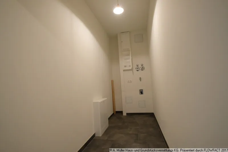 Ein geräumiger Hauswirtschaftsraum mit viel Nutzfläche und allen Versorgungsanschlüssen (u. a. Waschmaschinenanschluss) rundet das Raumangebot ab.