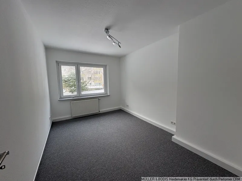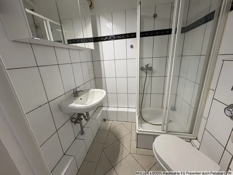 Die drei Wohnräume haben einen frischen weißen Anstrich und einen neuen Teppichboden erhalten. Das innenliegende Duschbad ist mit weißen Fliesen und Objekten (Dusche, Handwaschbecken und WC) ausgestattet.