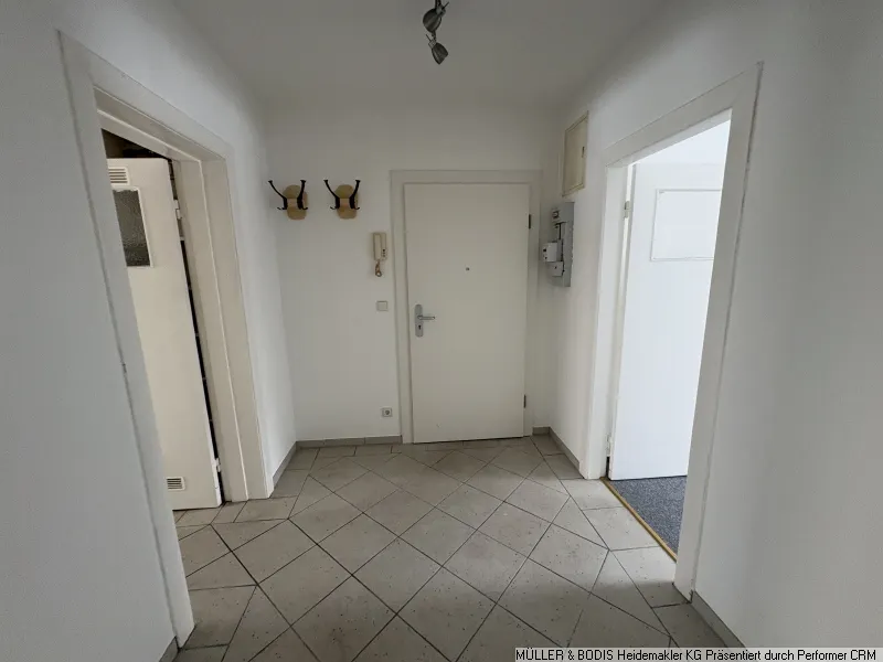 Die Wohnung ist klassisch aufgeteilt in Wohn-, Schlaf- und Kinderzimmer sowie Küche, Bad und Eingangsflur . Man betritt die Wohnung und befindet sich mittig im geräumigen Flur, der durchgehend bis in die Küche mit einer schlichten hellen Bodenfliese ausgelegt wurde. Bitte betrachten Sie den beigefügten Grundriss.