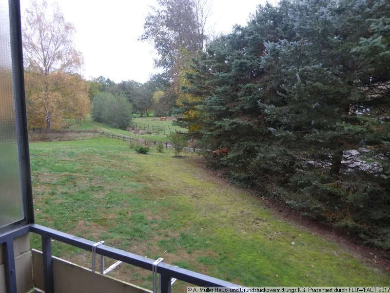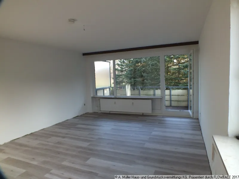 Das Wohnzimmer ist, aufgrund der beiden vorhandenen Fenster, hell und gut belichtet. Der Balkon bietet einen tollen Blick in das Auetal und ist zur rechten Seite mit einem gläsernen Sicht- und Windschutz versehen.
