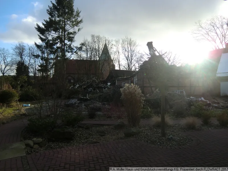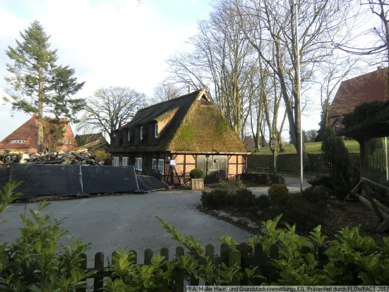 Auf diesem Flurstück befindet sich derzeit noch an der südlichen Grenze ein wunderschönes Reetdachfachwerkhaus (Haus I auf Flurkarte) mit einer Grenzbebauung, welches in eine neue Bebauung integriert werden könnte. Urspünglich stand der gesamte Komplex unter Denkmalschutz, der jedoch durch den Brand aufgehoben sein soll.