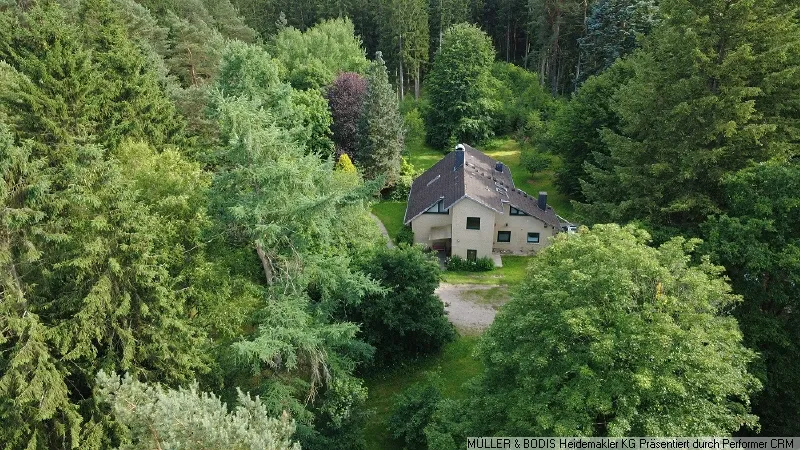 Das Ihnen mit dieser Offerte angebotene Objekt befindet sich in einer Alleinlage, ca. 1,7 km außerhalb des Ortes Handeloh mitten im Wald. Es handelt sich um ein traumhaftes ca. 2,2 ha großes Waldgrundstück, in dessen Mitte auf einer idyllischen Lichtung das Haus erbaut wurde.